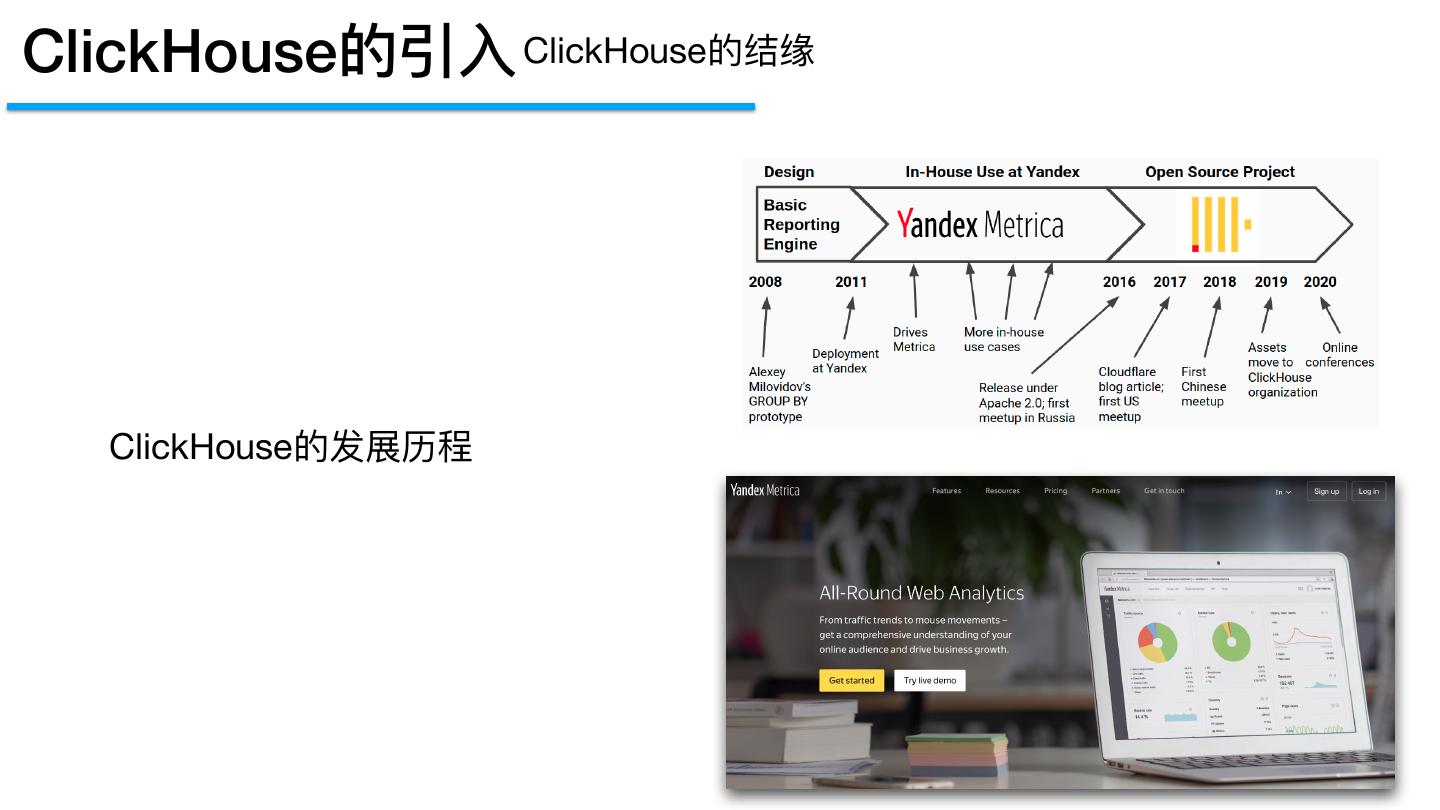 9 .ClickHouse的引⼊ ClickHouse的结缘 ClickHouse的发展历程