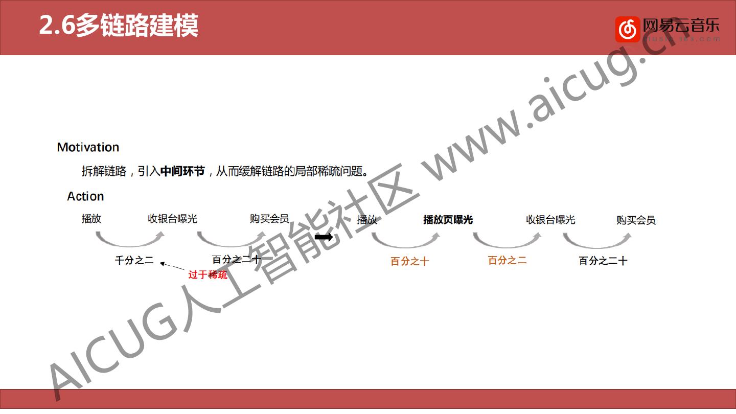 23 .多链路建模 . cn u g TS歌曲多链路联合建模 . aic ww w 社 区 智 能 人 工 U G A IC 商业化变现业务中,推荐场景的会员转化率相对提升30%