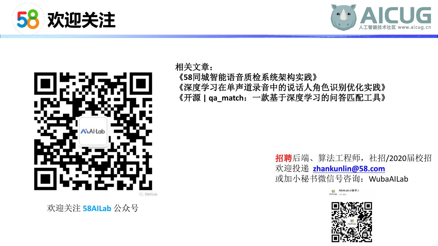 1 .【第12期】图像、NLP、语音技术在58的应用实践 欢迎关注AICUG人工智能技术社区 欢迎关注 58AILab 公众号 欢迎关注58技术公众号 (www.aicug.cn)