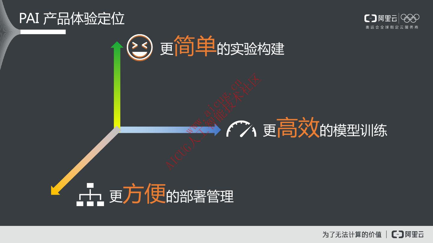 7 .PAI 产品体验定位 更 简单的实验构建 区 术 cn 社 技 g. 能 cu 智 ai 高效的模型训练 工 . 更 ww G人 w CU AI 更方便的部署管理