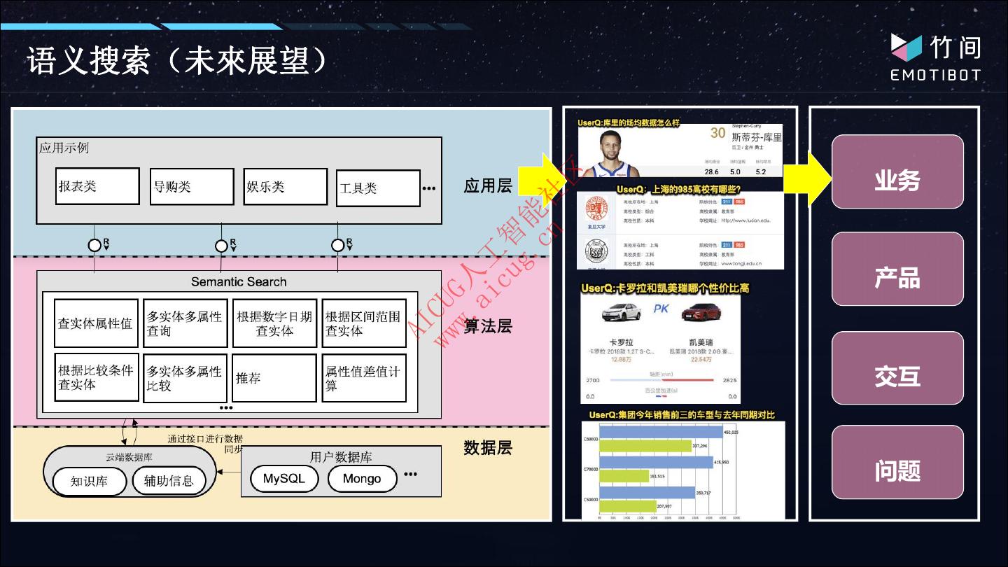 10 . 语义搜索(未來展望) AI ww CU w. G人 ai 工 cu 智 g. 能 cn 社 区 问题 交互 产品 业务