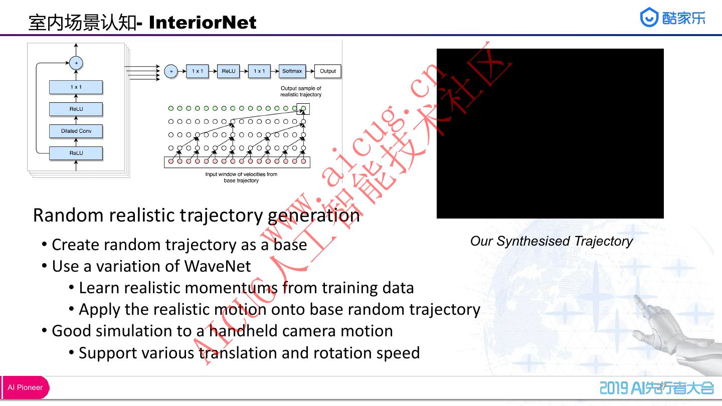 28 . 室内场景认知- InteriorNet 区 术 cn 社 技 g. 能 cu 智 ai 工 . Random realistic trajectory generation ww • Create random trajectory as a base Our Synthesised Trajectory G人 w • Use a variation of WaveNet • Learn realistic momentums from training data • Apply the realistic motion onto base random trajectory CU • Good simulation to a handheld camera motion AI • Support various translation and rotation speed AI Pioneer 27