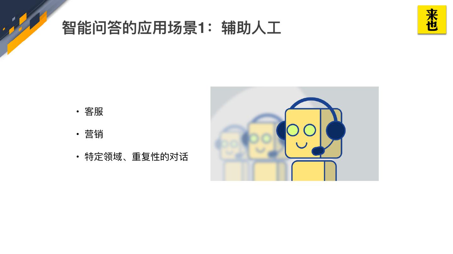5 .智能问答的应⽤用场景1:辅助⼈人⼯工 • 客服 • 营销 • 特定领域、重复性的对话