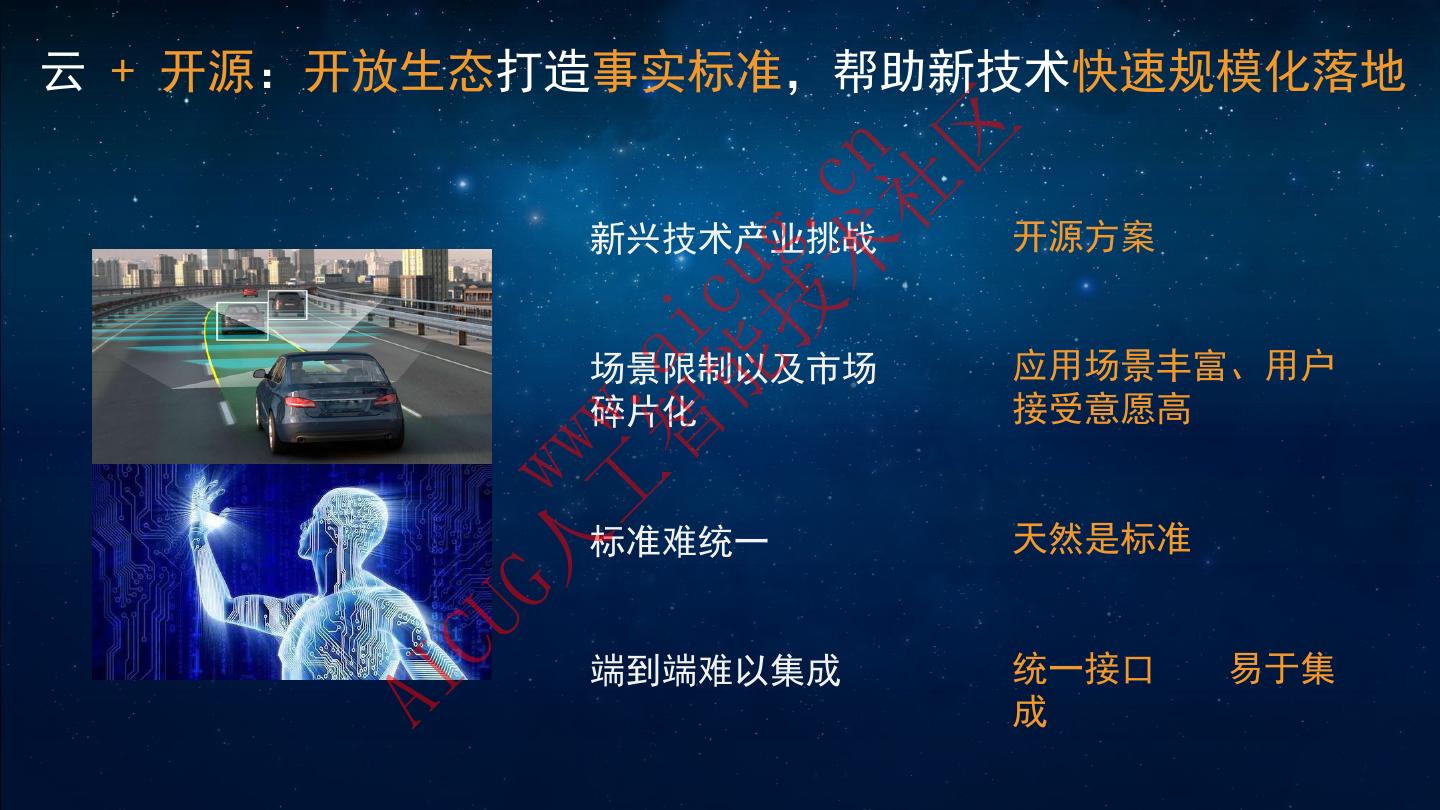 10 .AI CU G人 w ww 工 . 智 ai 能 cu 技 g. 术 cn 开源的“本质” 社 区 开放式协同创新,创造无法估量的价值