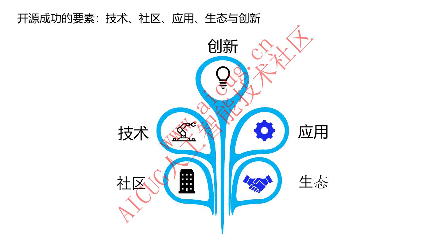 13 .开源成功的要素:技术、社区、应用、生态与创新 创新 区 术 cn 社 技 g. 能 cu 智 ai 工 . 技术 应用 ww G人 w 社区 生态 CU AI