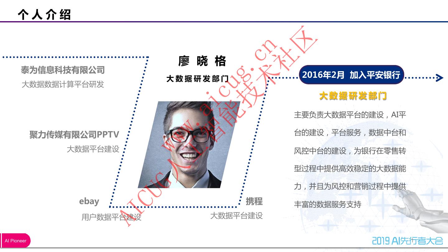 1 .AI CU G人 w ww 工 . 智 ai 能 cu 技 g. 廖晓格 / 平安银行 术 cn 社 区 金融大数据在A I 实践