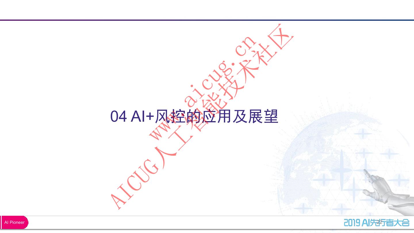 23 .AI Pioneer AI CU G人 w ww 工 . 智 ai 能 cu 技 g. 术 cn 社 04 AI+风控的应用及展望 区 22