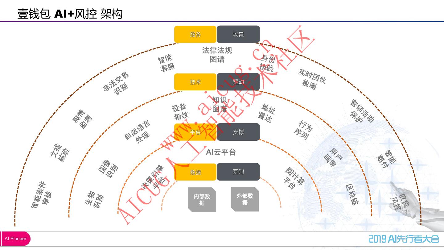 24 . 壹钱包 AI+风控 架构 区 术 cn 社 技 g. 能 cu 智 ai 工 . ww G人 w CU 内部数 外部数 据 据 AI 23 AI Pioneer