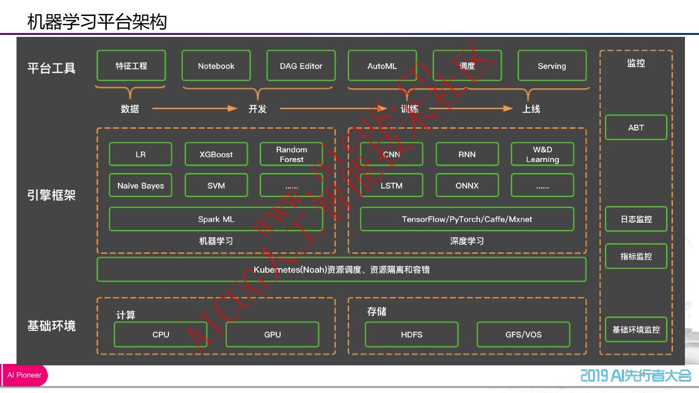 6 . 机器学习平台 区 术 cn 在线开发环境IDE 社 技 g. 能 cu 数据&特征工程 智 ai 工 . 计算引擎演进 ww G人 w 模型上线流程 CU 全方面监控 AI AI Pioneer 5
