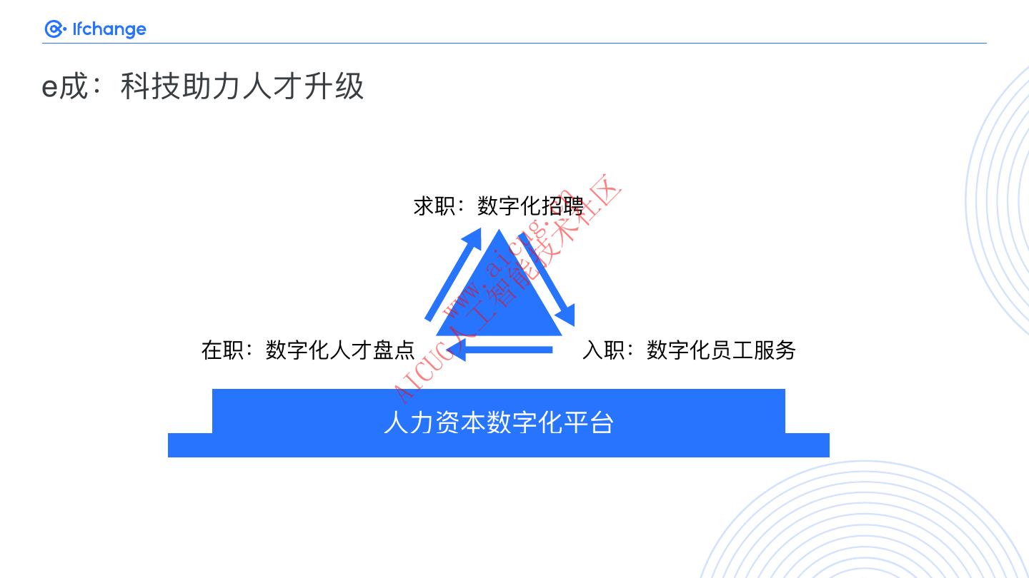 3 .e成:科技助⼒力力⼈人才升级 区 求职:数字化招聘 术 cn 社 技 g. 能 cu 智 ai 工 . ww G人 w 在职:数字化⼈人才盘点 ⼊入职:数字化员⼯工服务 CU AI ⼈人⼒力力资本数字化平台