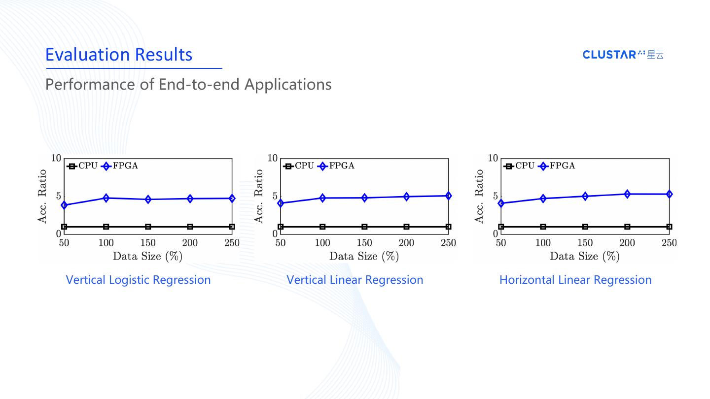 其次,本次演讲也会介绍星云 Clustar 的硬件加速技术,介绍如何通过对联邦学习底层算子的加速,有效地提升联邦学习应用的性能。 最后,本次演讲也会展示硬件加速对联邦学习多个应用端到端性能的提升效果。