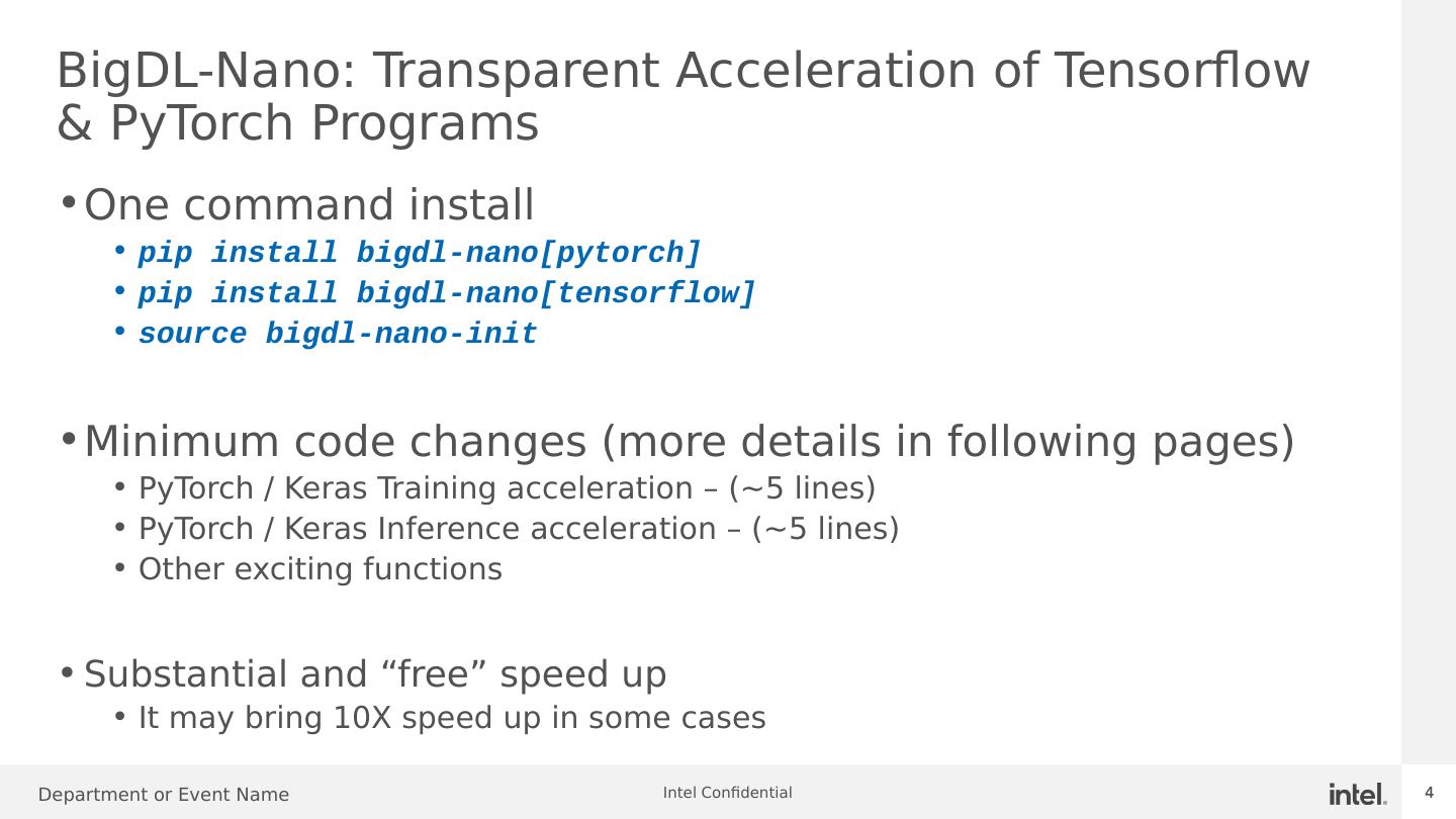 使用Intel BigDL-Nano对PyTorch/Tensorflow应用进行无缝的加速与调优