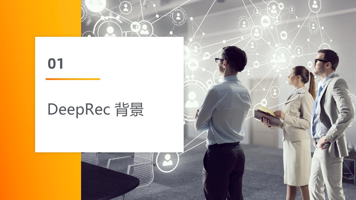 2 . 01 DeepRec 背景 Contents 02 DeepRec 功能 目录 03 DeepRec 开源 04 DeepRec on BigDL