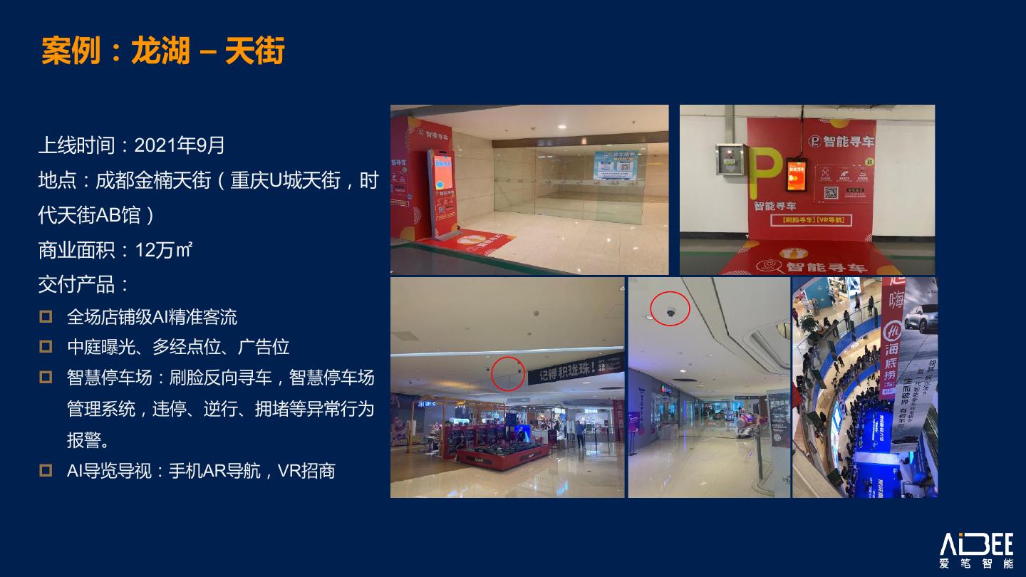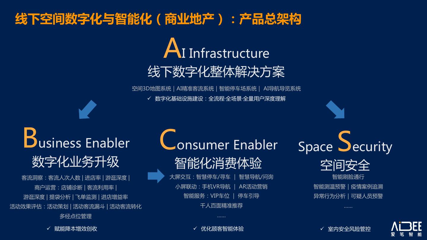 5 . 线下空间数字化与智能化(商业地产):产品总架构 AI Infrastructure 线下数字化整体解决方案 空间3D地图系统|AI精准客流系统|智能停车场系统| AI导航导览系统 ü 数字化基础设施建设:全流程·全场景·全量用户深度理解 Business Enabler Consumer Enabler Space S ecurity 数字化业务升级 智能化消费体验 空间安全 客流洞察:客流人次人数 | 进店率 | 游逛深度 | 大屏交互:智慧停车/寻车 | 智慧导航/问询 智能刷脸通行 商户运营:店铺诊断 | 客流利用率 | 小屏联动:手机VR导航 | AR活动营销 智能测温预警|疫情案例追溯 游逛深度 | 提袋分析 | 飞单监测 | 进店增益率 智能服务:VIP车位 | 停车引导 异常行为分析|可疑人员预警 活动效果评估:活动策划 | 活动客流漏斗 | 活动客流转化 千人百面精准推荐 …… 多经点位管理 …… …… ü 赋能降本增效创收 ü 优化顾客智能体验 ü 室内安全风险管控
