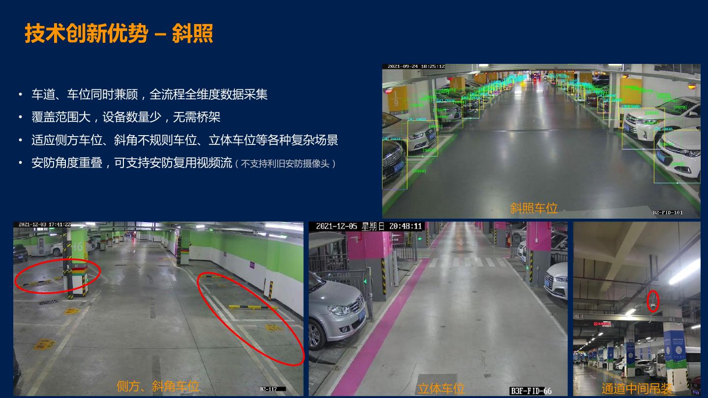 13 .技术创新优势 – 斜照 • 车道、车位同时兼顾,全流程全维度数据采集 • 覆盖范围大,设备数量少,无需桥架 • 适应侧方车位、斜角不规则车位、立体车位等各种复杂场景 • 安防角度重叠,可支持安防复用视频流(不支持利旧安防摄像头) 斜照车位 侧方、斜角车位 立体车位 通道中间吊装
