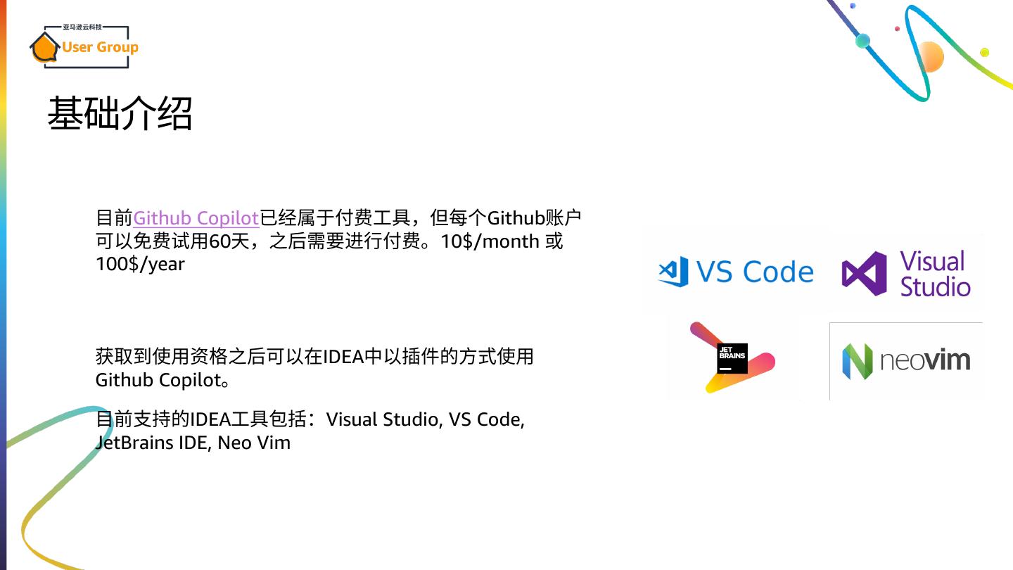 6 . Github Copilot Github 60 10$/month 100$/year IDEA务 Github Copilot IDEA Visual Studio, VS Code, JetBrains IDE, Neo Vim