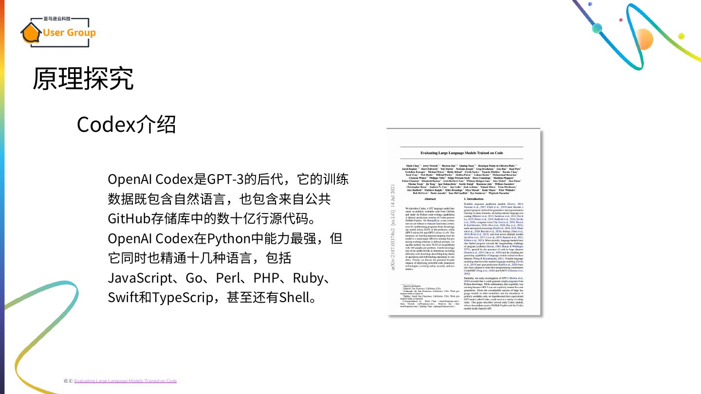 13 . 确 Codex OpenAI Codex GPT-3 GitHub 务 OpenAI Codex Python务 JavaScript Go Perl PHP Ruby Swift TypeScrip Shell 论文: Evaluating Large Language Models Trained on Code