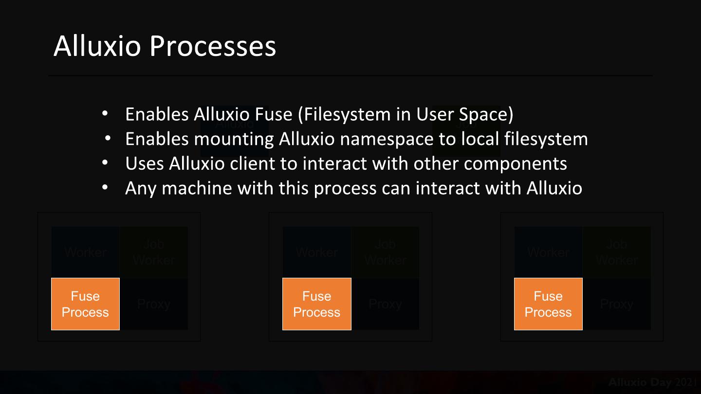 11 . • Alluxio Job • Master Master • • Job Job Job Worker Worker Worker Worker Worker Worker Fuse Fuse Fuse Proxy Proxy Proxy Process Process Process