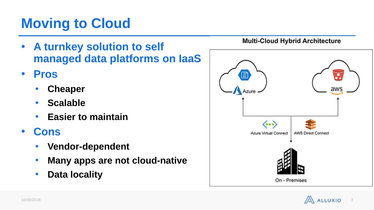 7 .Moving to Cloud 7 A turnkey solution to self managed data platforms on IaaS Pros Cheaper Scalable Easier to maintain Cons Vendor-dependent Many apps are not cloud-native Data locality 10/27/18