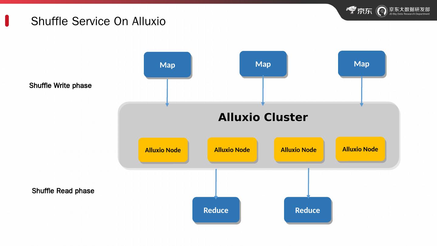 20 .Cluster1 Shuffle Write phase Alluxio Node Alluxio Node Alluxio Node Cluster2 Map Map Map Shuffle Read phase Alluxio Cluster Alluxio Node Reduce Reduce Shuffle Service On Alluxio