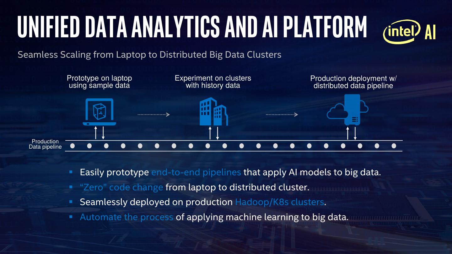 1 . What is Analytics Zoo Distributed, High-Performance Unified Analytics + AI Platform Deep Learning Framework Distributed TensorFlow, Keras, PyTorch and BigDL on for Apache Spark Apache Spark https://github.com/intel-analytics/bigdl https://github.com/intel-analytics/analytics-zoo Accelerating Data Analytics + AI Solutions At Scale