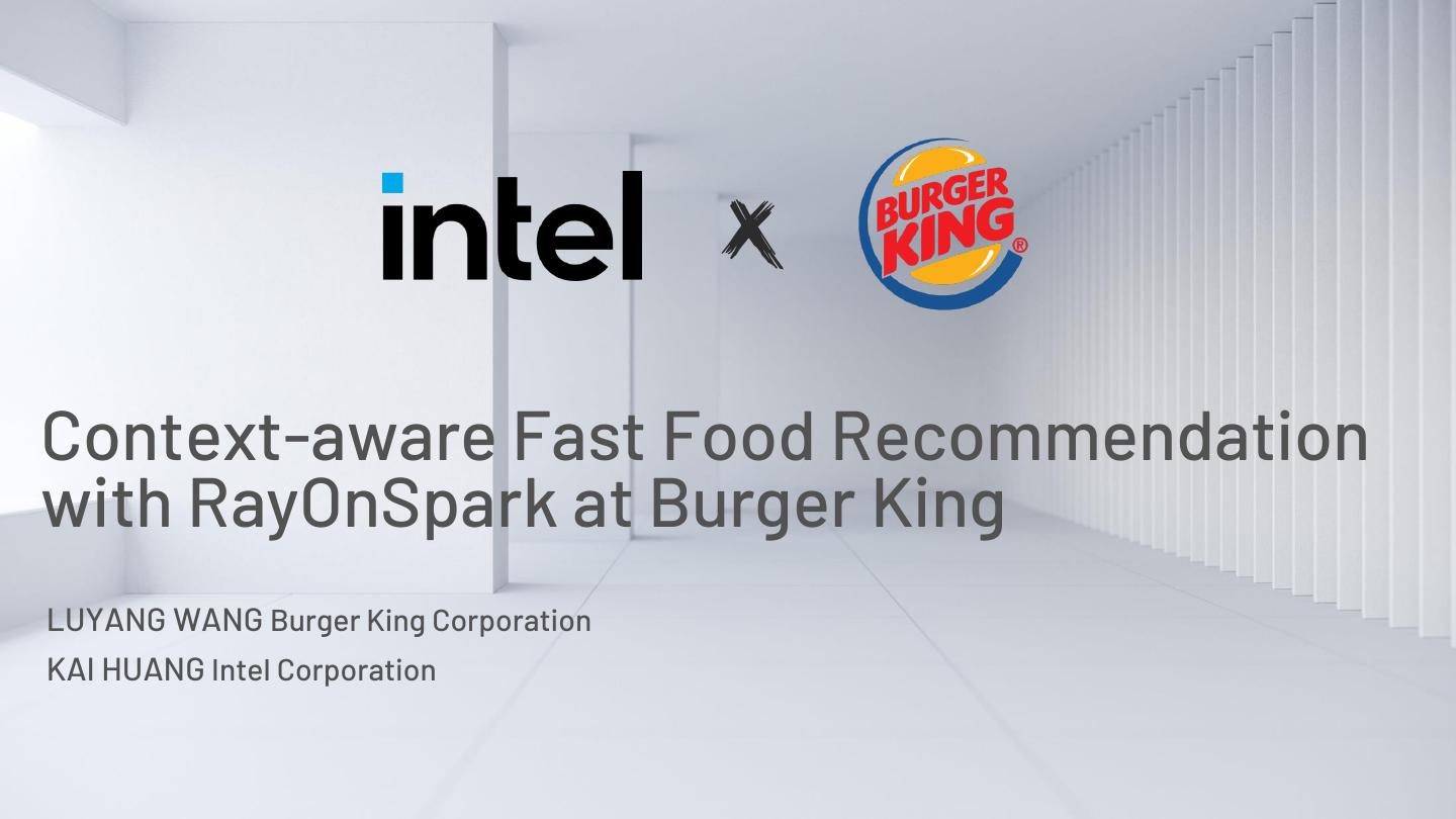 2 .Context-aware Fast Food Recommendation with RayOnSpark at Burger King LUYANG WANG Burger King Corporation KAI HUANG Intel Corporation