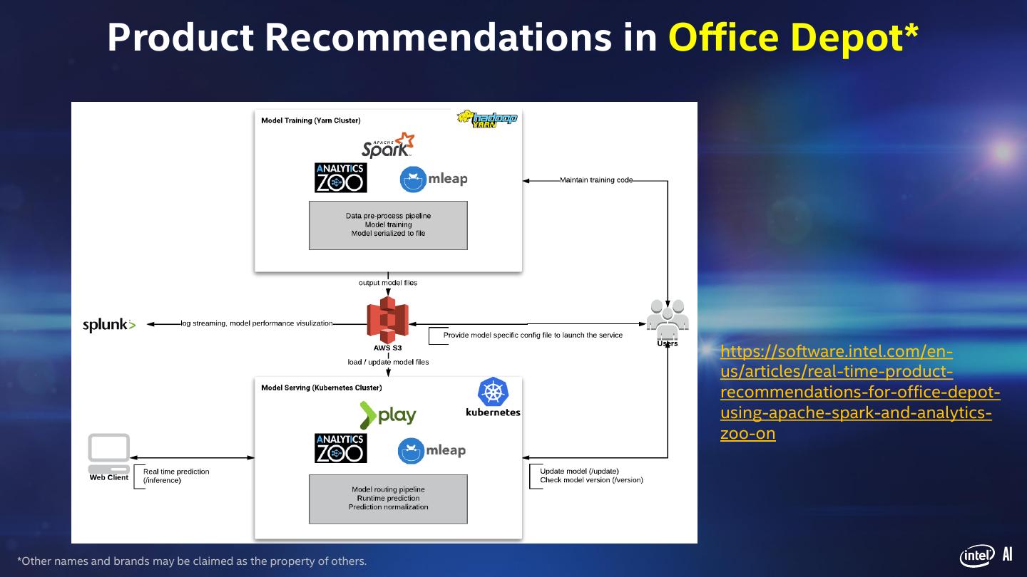 11 . Product Recommendations in Office Depot* https://software.intel.com/en- us/articles/real-time-product- recommendations-for-office-depot- using-apache-spark-and-analytics- zoo-on *Other names and brands may be claimed as the property of others. AI