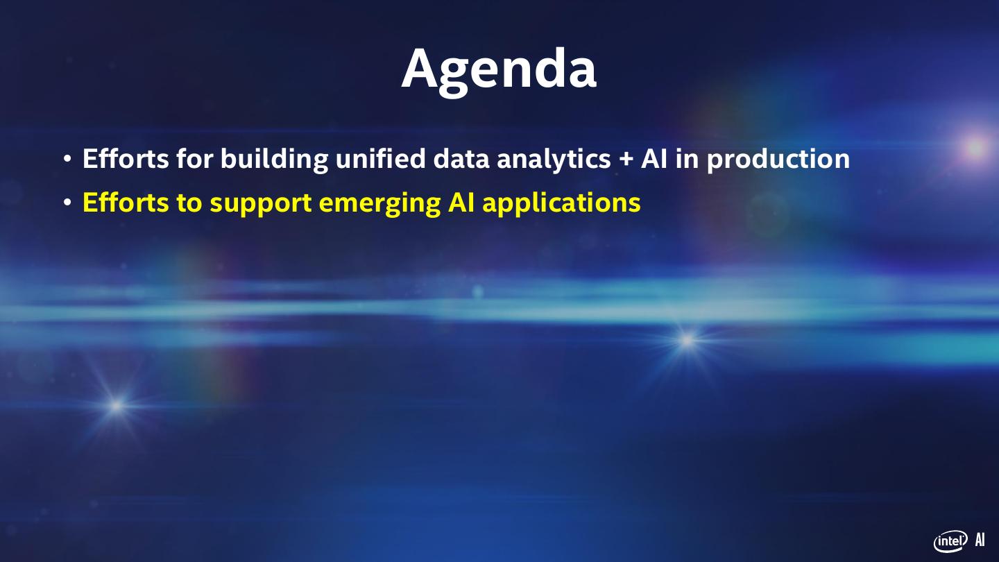 3 . Agenda • Efforts for building unified data analytics + AI in production • Efforts to support emerging AI applications AI