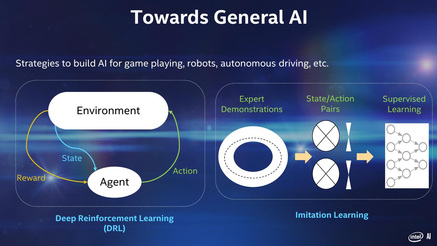 16 . Towards General AI Strategies to build AI for game playing, robots, autonomous driving, etc. Expert State/Action Supervised Environment Demonstrations Pairs Learning State Action Reward Agent Deep Reinforcement Learning Imitation Learning (DRL) AI