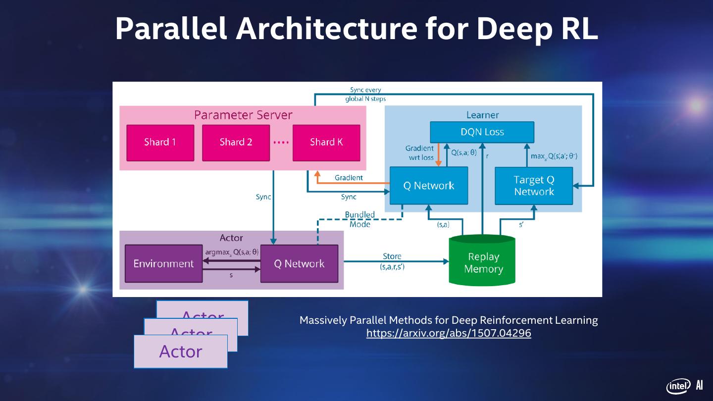17 .Parallel Architecture for Deep RL Actor Massively Parallel Methods for Deep Reinforcement Learning Actor https://arxiv.org/abs/1507.04296 Actor AI