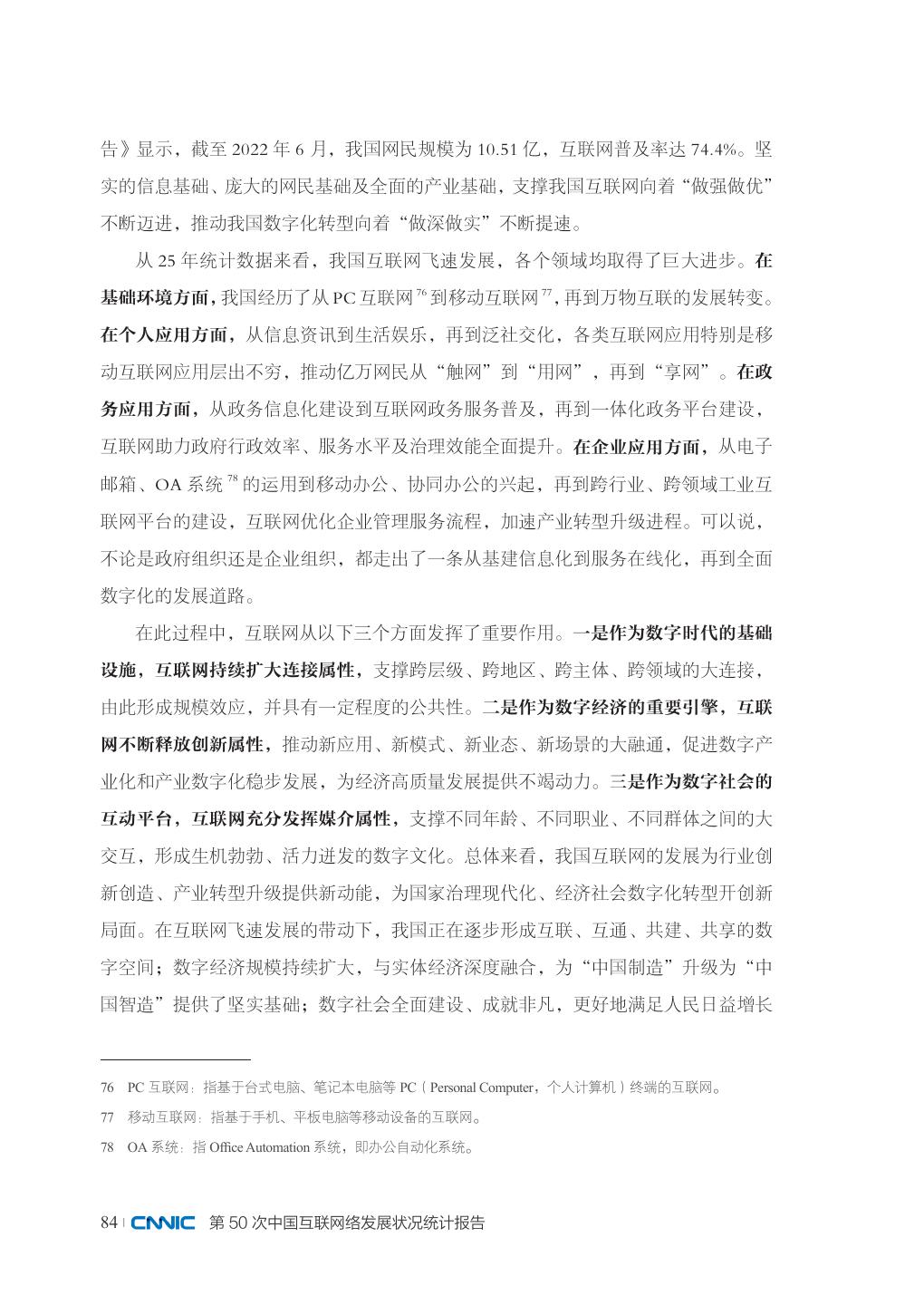 10 .5 The 50th Statistical Report on China’s Internet Development 第 50 次中国互联网络发展状况统计报告 6| 第 50 次中国互联网络发展状况统计报告
