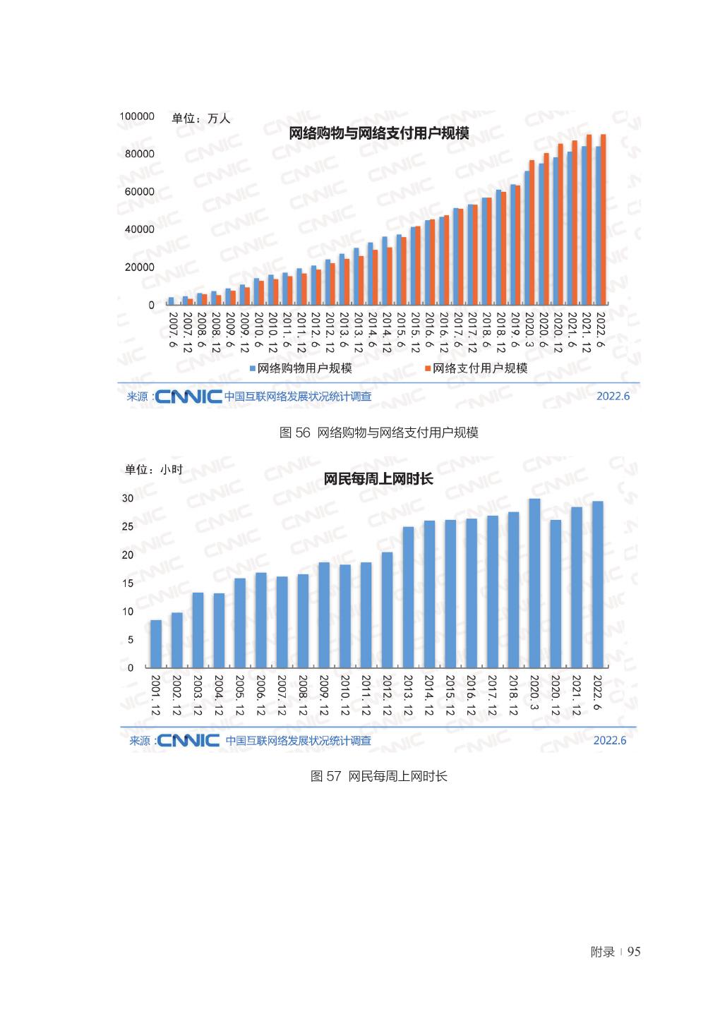 27 . (二)上网时长 截至 2022 年 6 月,我国网民的人均每周上网时长 11 为 29.5 个小时,较 2021 年 12 月提升 1.0 个小时。 图 14 网民人均每周上网时长 (三)固定宽带接入情况 固定宽带接入用户数稳步增加,千兆用户占比超一成。 截至 2022 年 6 月,三 家基础电信企业的固定互联网宽带接入用户总数达 5.63 亿户,较 2021 年 12 月净增 2705 万户。其中,100Mbps 及以上接入速率的固定互联网宽带接入用户达 5.27 亿户, 占总用户数的 93.7%;1000Mbps 及以上接入速率的固定互联网宽带接入用户达 6111 万户,较 2021 年 12 月净增 2656 万户,占总用户数的 10.9%。 11 人均每周上网时长:指过去半年内,网民一周七天平均每天上网的小时数 ×7 天。 第一章 互联网基础建设状况 | 17
