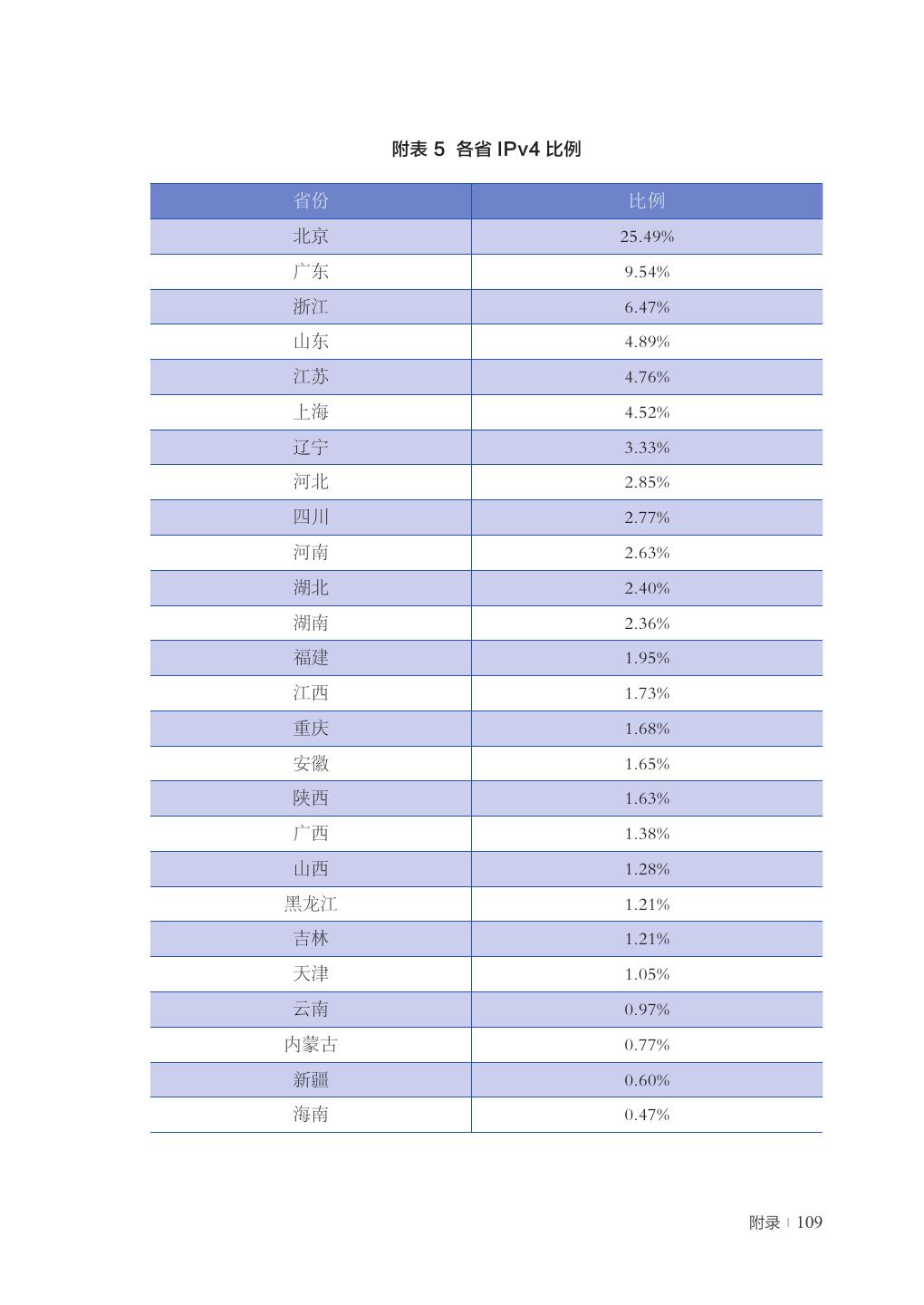 5 . 目 录 核心数据 1 PART 互联网基础建设状况 1 一、互联网基础资源 (一)IP 地址 7 7 (二)域名 9 (三)移动电话基站数量 10 (四)互联网宽带接入端口数量 11 (五)光缆线路长度 12 二、互联网资源应用 12 (一)网站 12 (二)移动互联网接入流量 14 (三)APP 数量及分类 14 三、互联网接入环境 15 (一)上网设备 15 (二)上网时长 17 (三)固定宽带接入情况 17 (四)蜂窝物联网终端用户数 19 目录 | 1