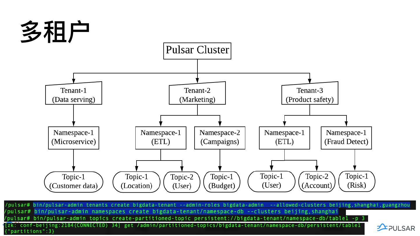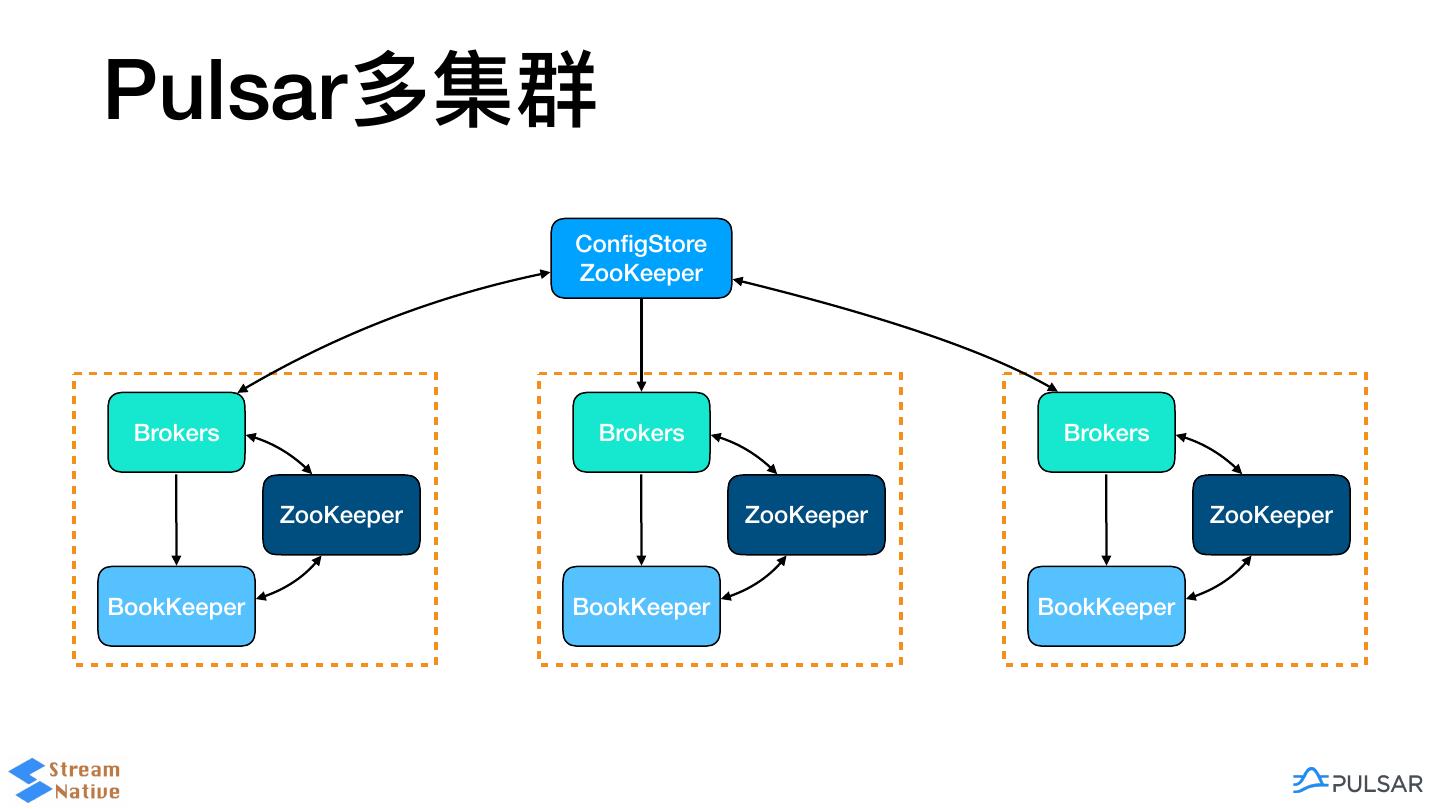 12 .Pulsar多集群 ConfigStore ZooKeeper Brokers Brokers Brokers ZooKeeper ZooKeeper ZooKeeper BookKeeper BookKeeper BookKeeper