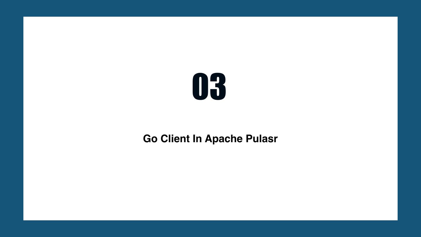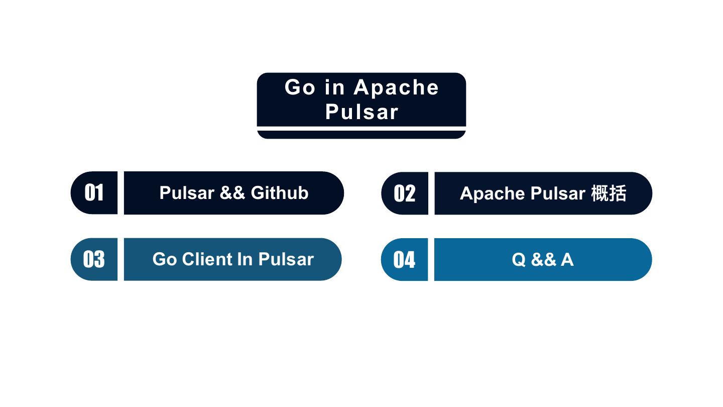 2 . Go in Apache Pulsar 01 Pulsar && Github 02 Apache Pulsar 概括 03 Go Client In Pulsar 04 Q && A