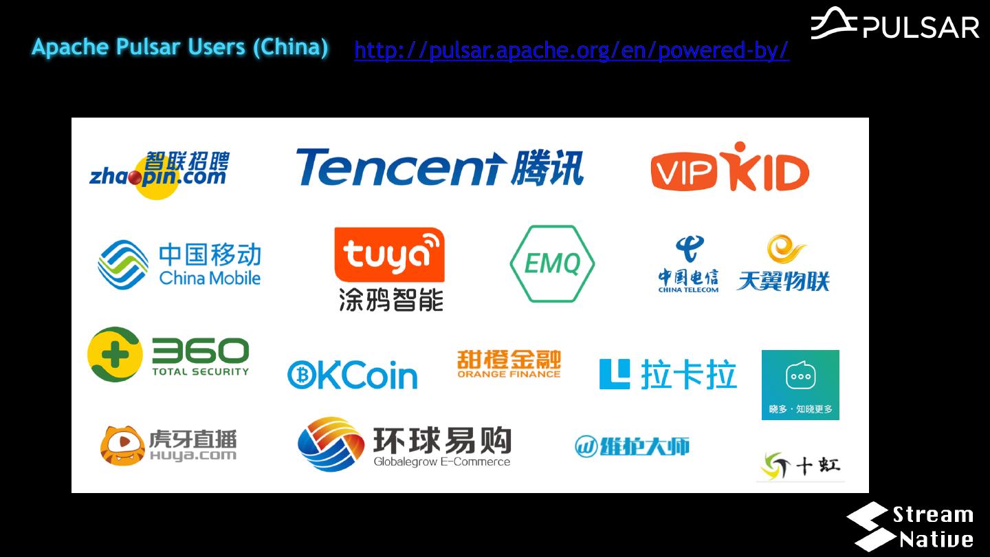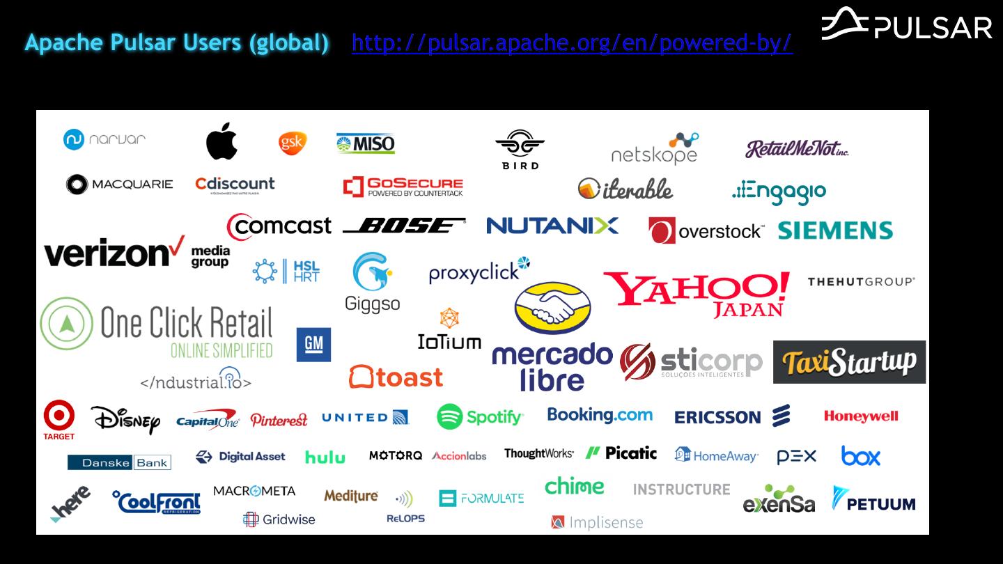 6 .Apache Pulsar Users (global) http://pulsar.apache.org/en/powered-by/