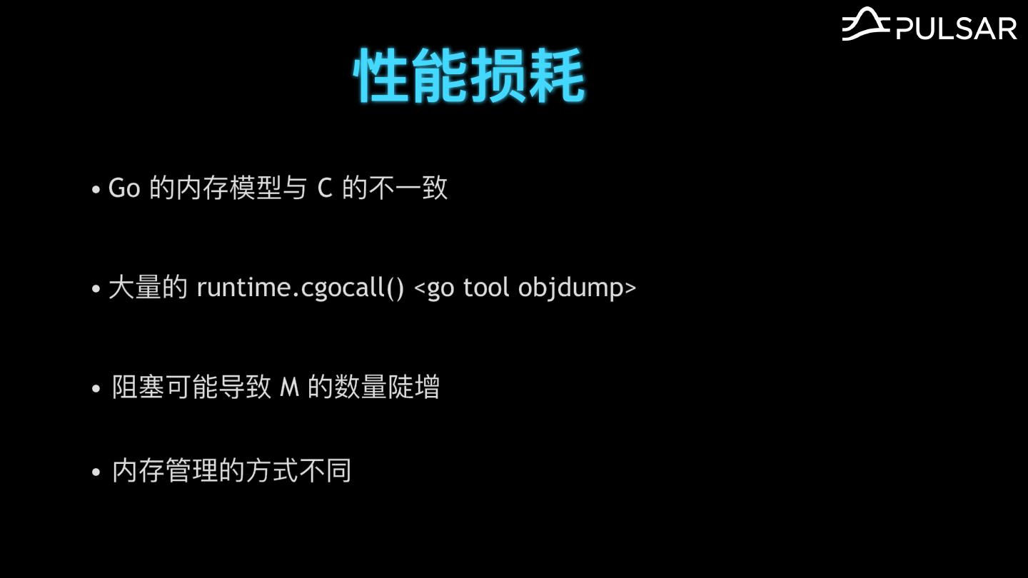 25 . 性能损耗 • Go 的内存模型与 C 的不⼀致 • ⼤量的 runtime.cgocall() <go tool objdump> • 阻塞可能导致 M 的数量陡增 • 内存管理的⽅式不同