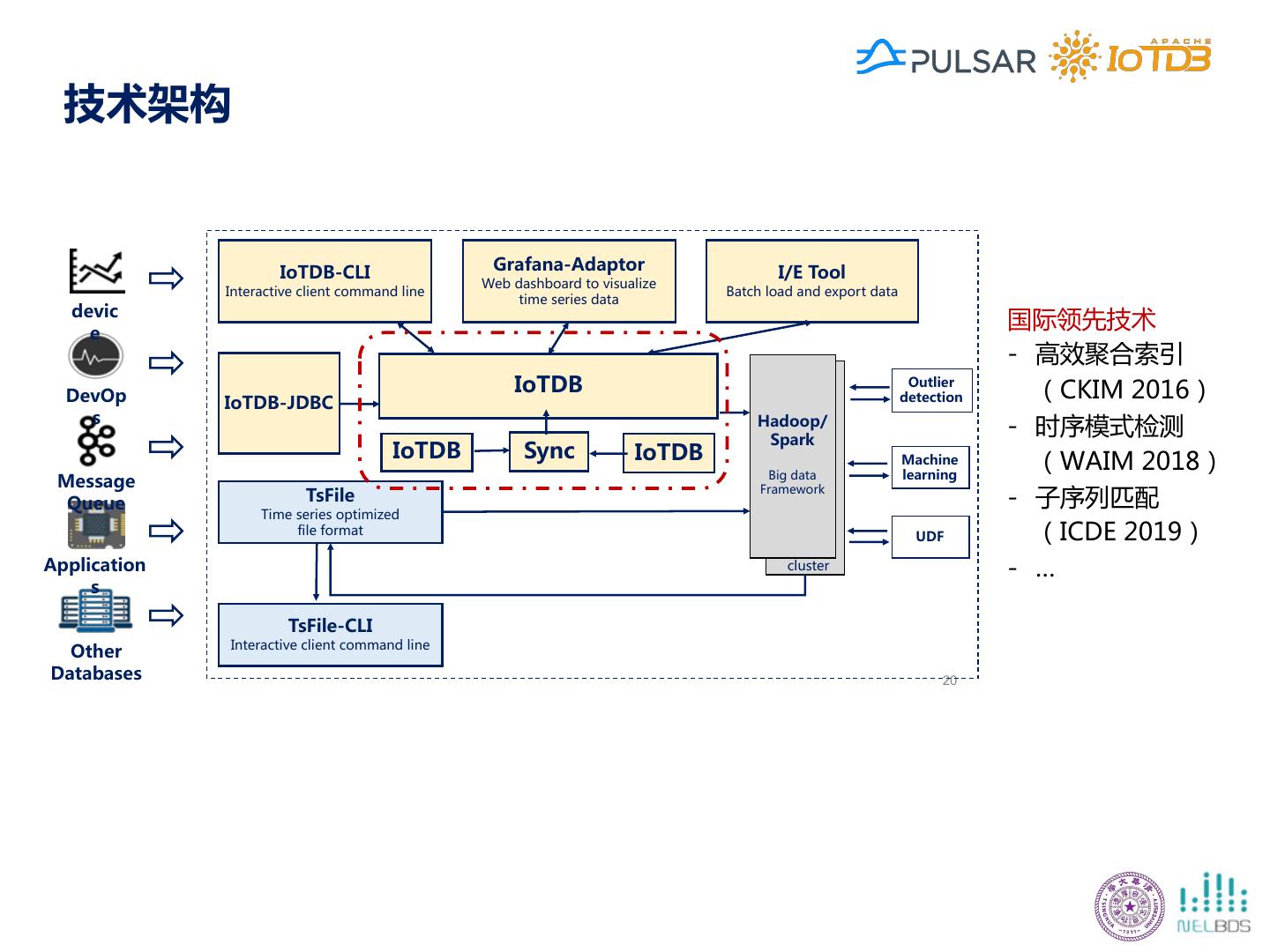 27 .技术架构 - / / / / - A 国际领先技术 - 高效聚合索引 A - (CKIM 2016) - / / - 时序模式检测 - B - / / (WAIM 2018) / - - 子序列匹配 (ICDE 2019) / - … - / / / 20