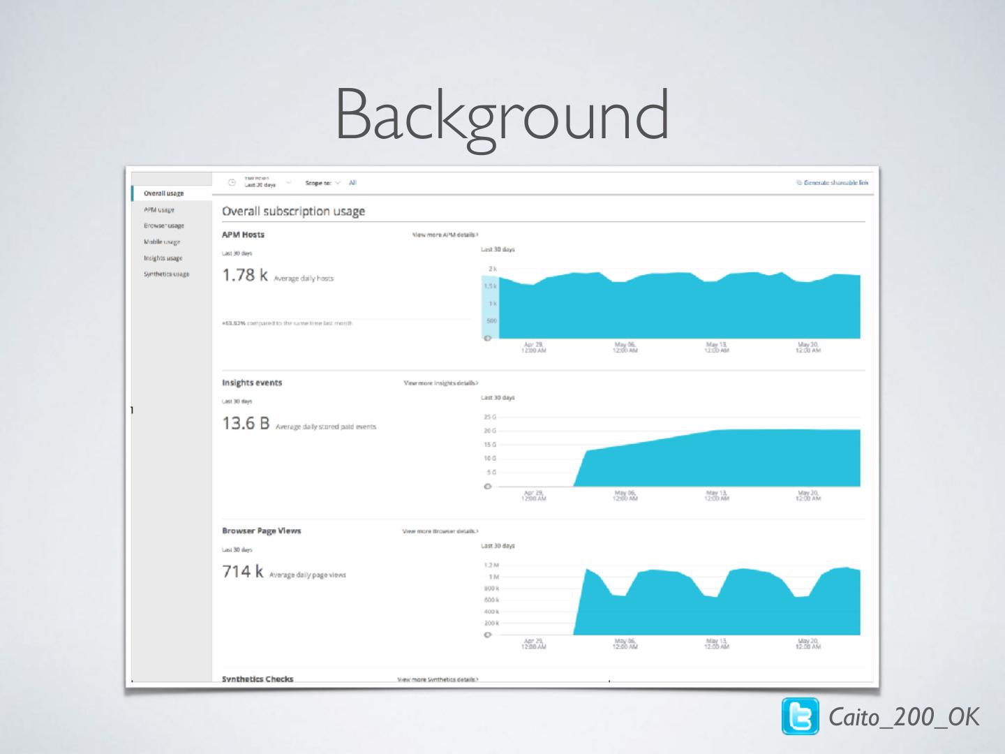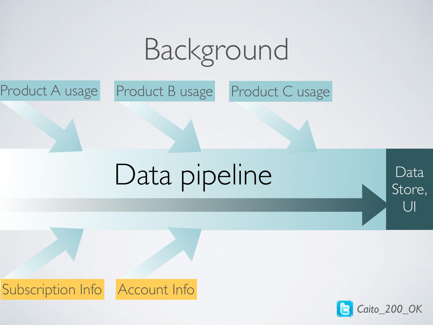 8 . Background Product A usage Product B usage Product C usage Data pipeline Data Store, UI Subscription Info Account Info Caito_200_OK
