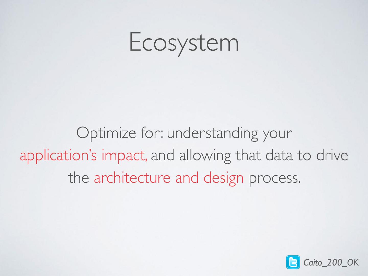 22 . Ecosystem Optimize for: understanding your application’s impact, and allowing that data to drive the architecture and design process. Caito_200_OK