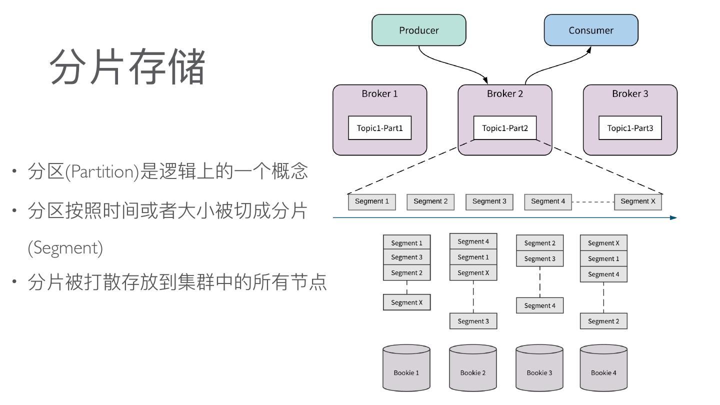 10 . 分⽚片存储 • 分区(Partition)是逻辑上的⼀一个概念 • 分区按照时间或者⼤大⼩小被切成分⽚片 (Segment) • 分⽚片被打散存放到集群中的所有节点