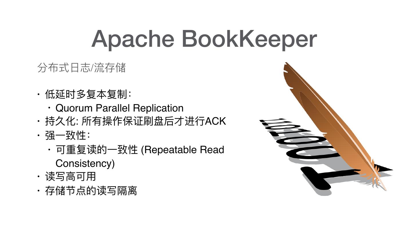 5 . 分层架构 — BookKeeper BookKeeper分布式⽇日志/流存储 • 低延时、⾼高吞吐、持久化 • 强⼀一致 (repeatable read consistency) • ⾼高可⽤用 • 单节点可以存储很多⽇日志 • I/O隔离
