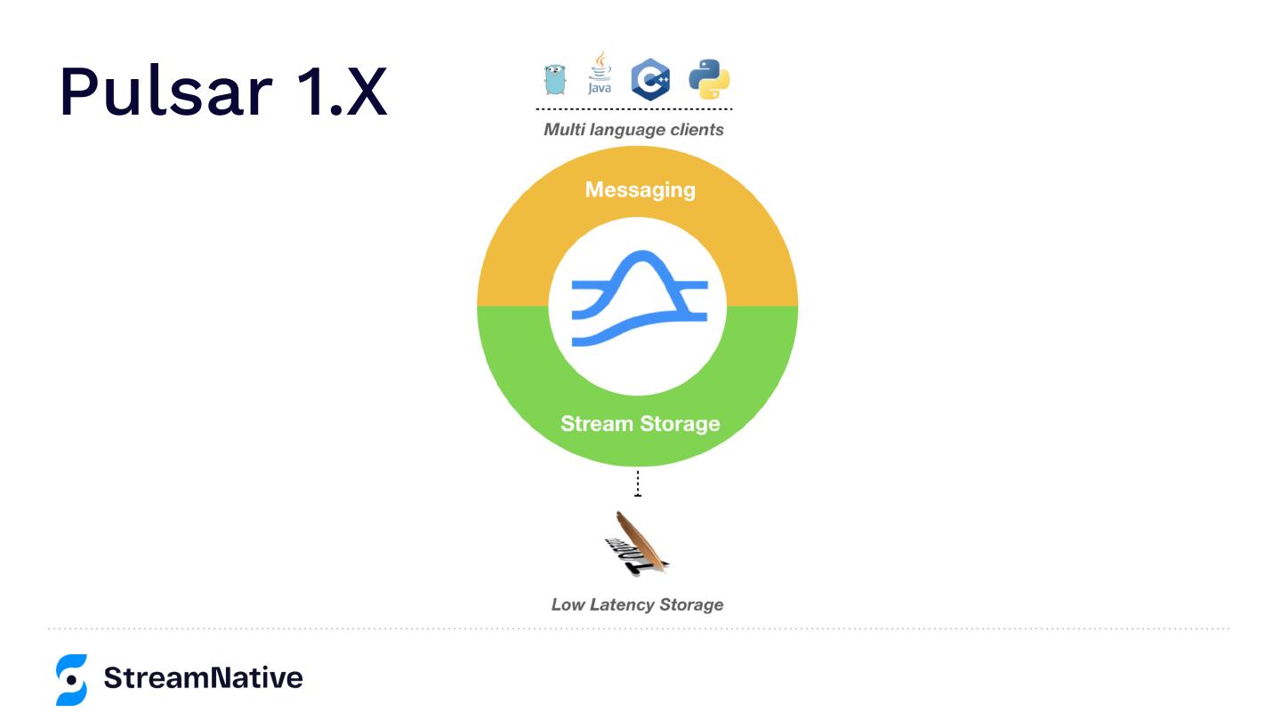 19 .Apache Pulsar Data APIs Producer Consumer Messaging API Broker 1 Broker 2 Broker 3 Segment API Bookie1 Bookie2 Bookie3 Bookie4 Bookie5 S3 GCS HADOOP