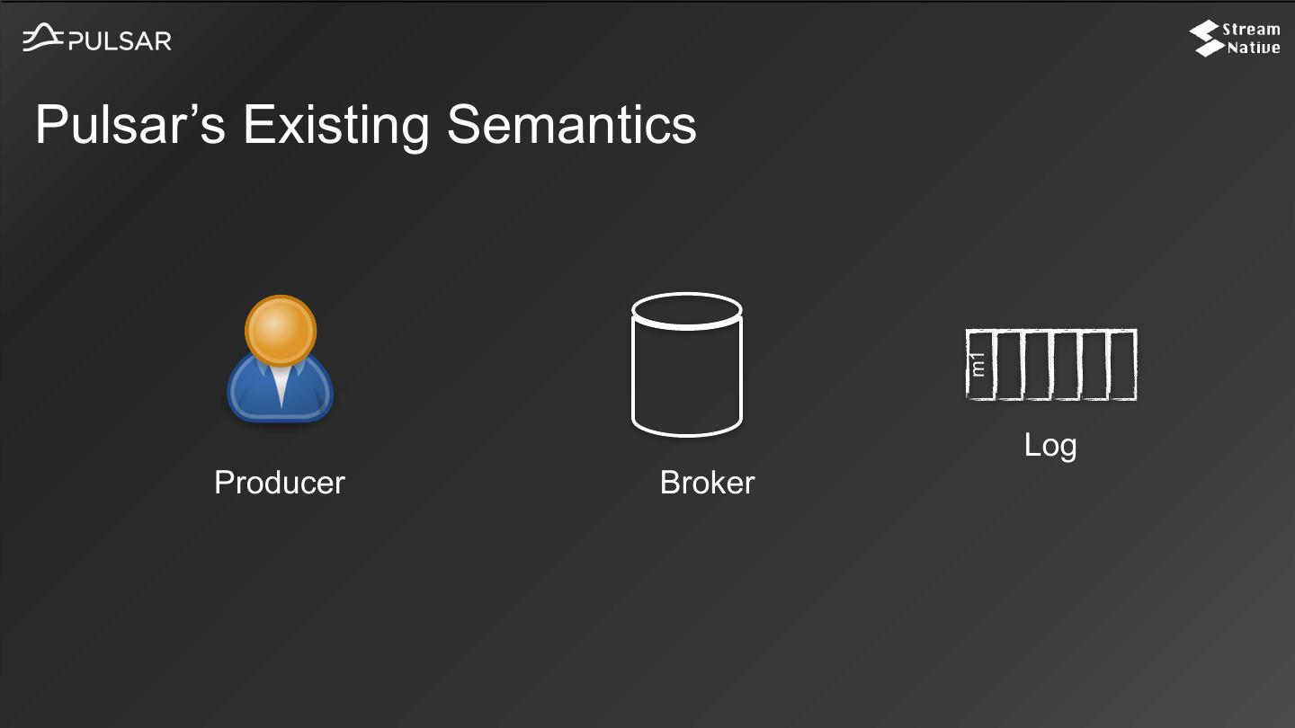 9 .Pulsar’s Existing Semantics m1 Log Producer Broker