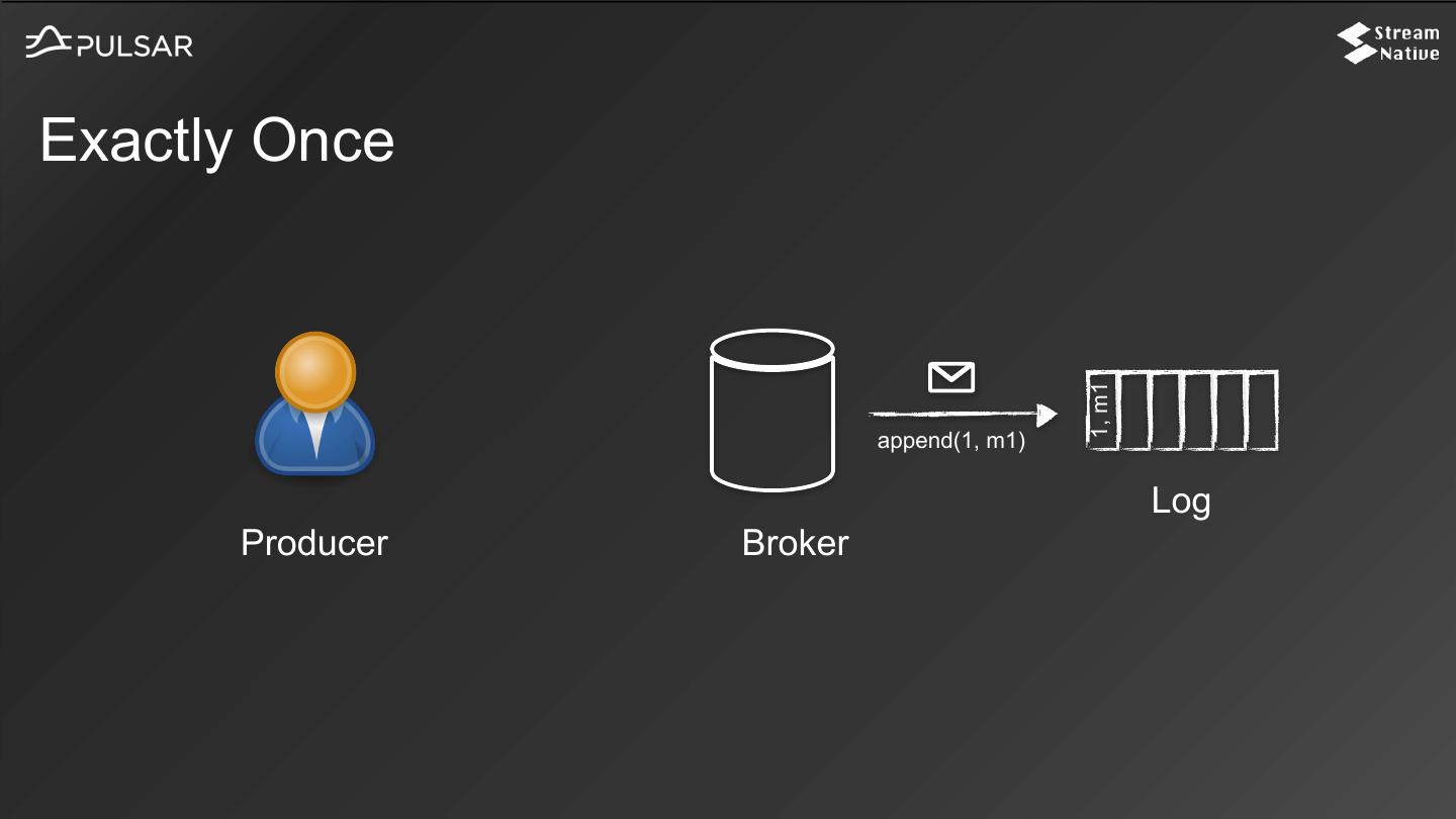 25 .Exactly Once 1, m1 append(1, m1) Log Producer Broker