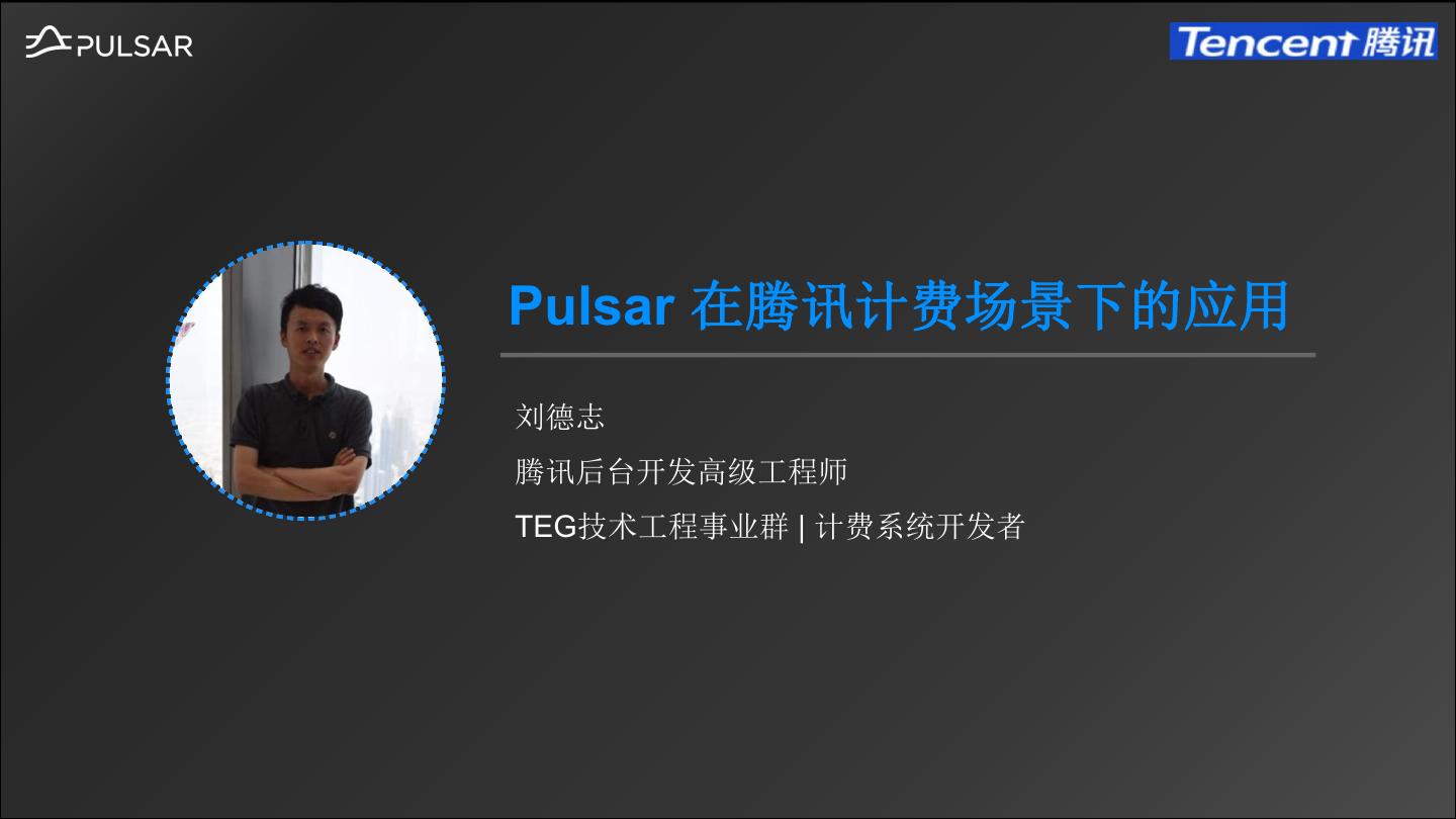 2 . Add your logo image Pulsar 在腾讯计费场景下的应用 PHOTO 刘德志 腾讯后台开发高级工程师 TEG技术工程事业群 | 计费系统开发者