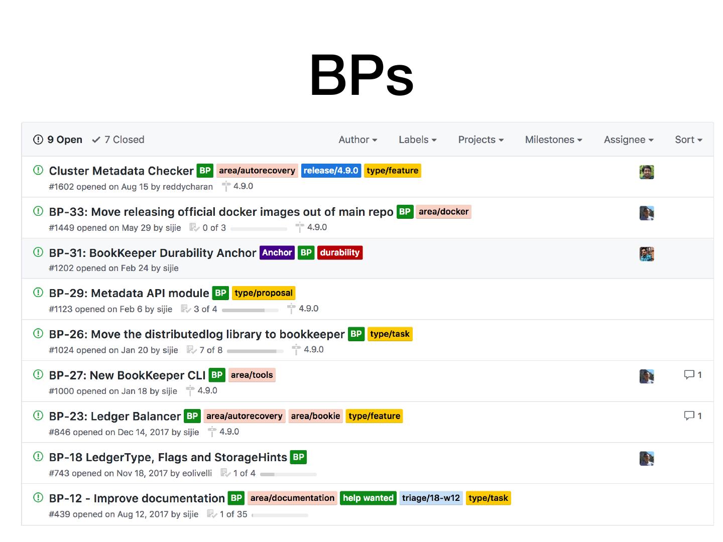 10 . Issue first • https://github.com/apache/bookkeeper • Issue • Question • Feature request • Bug report