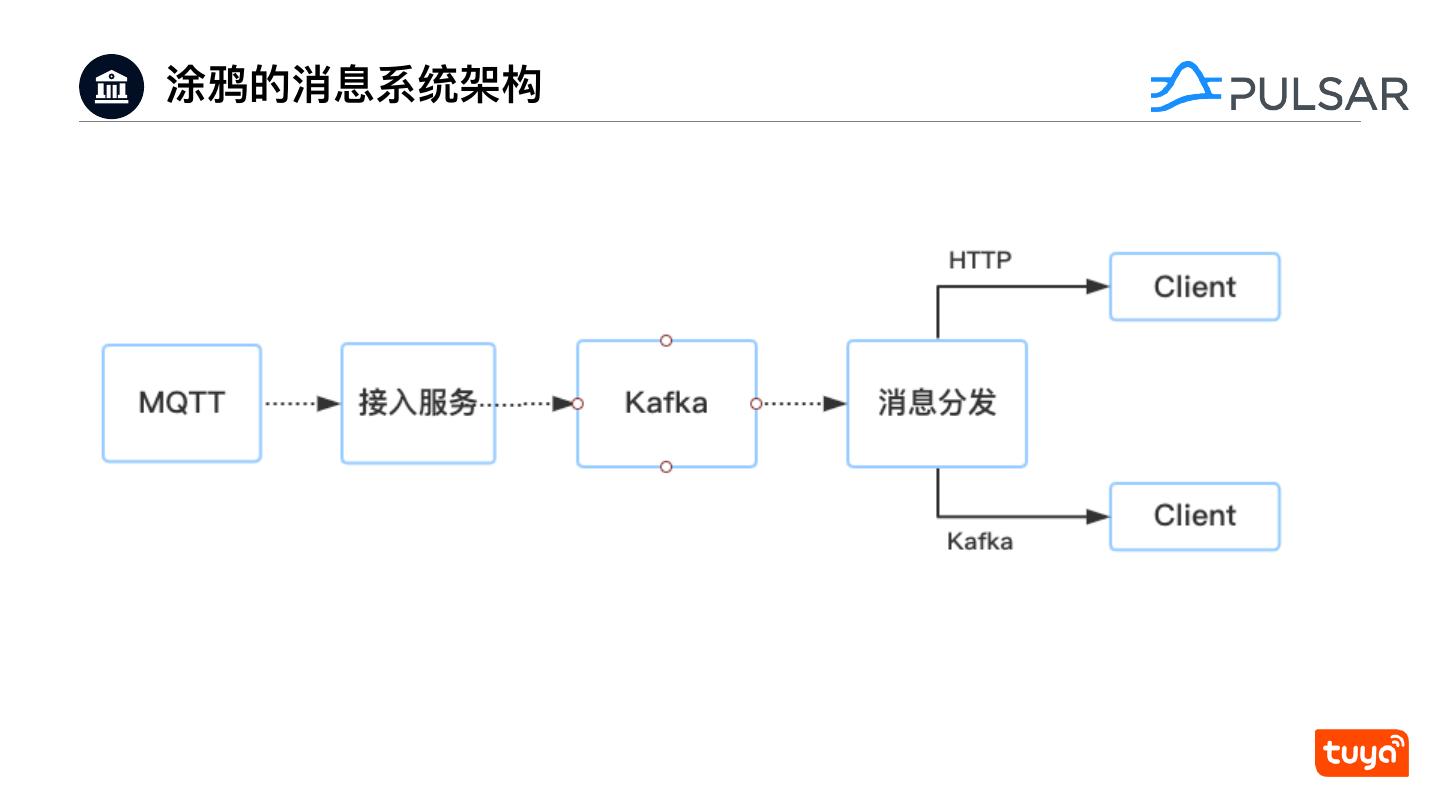 10 .涂鸦的消息系统架构 业务痛点: 1. HTTP投递⽅式不够灵活 2. Kafka的topic数量与⽇俱增 3. 租户之间相互影响