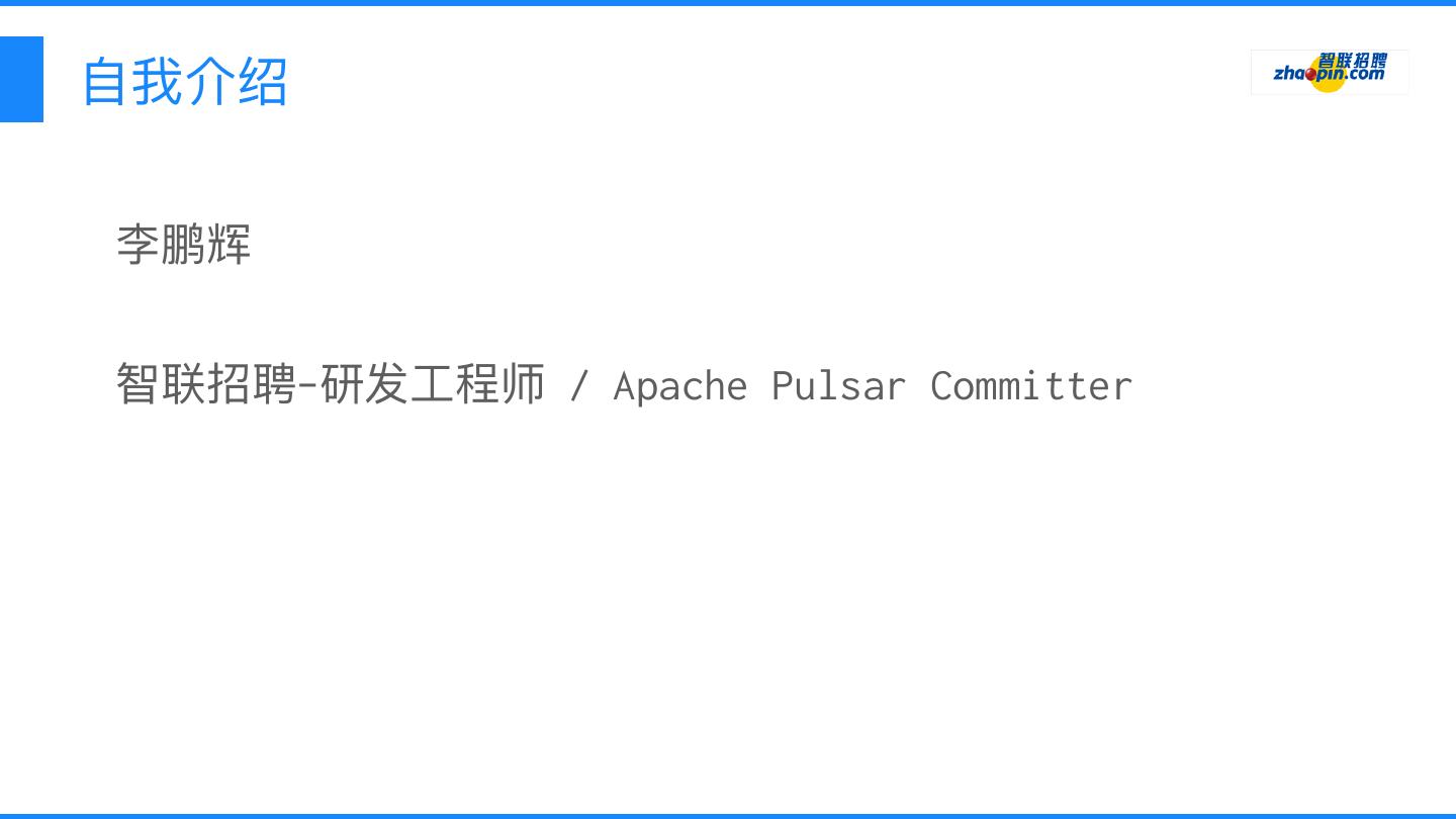 2 .⾃自我介绍 李李鹏辉 智联招聘-研发⼯工程师 / Apache Pulsar Committer