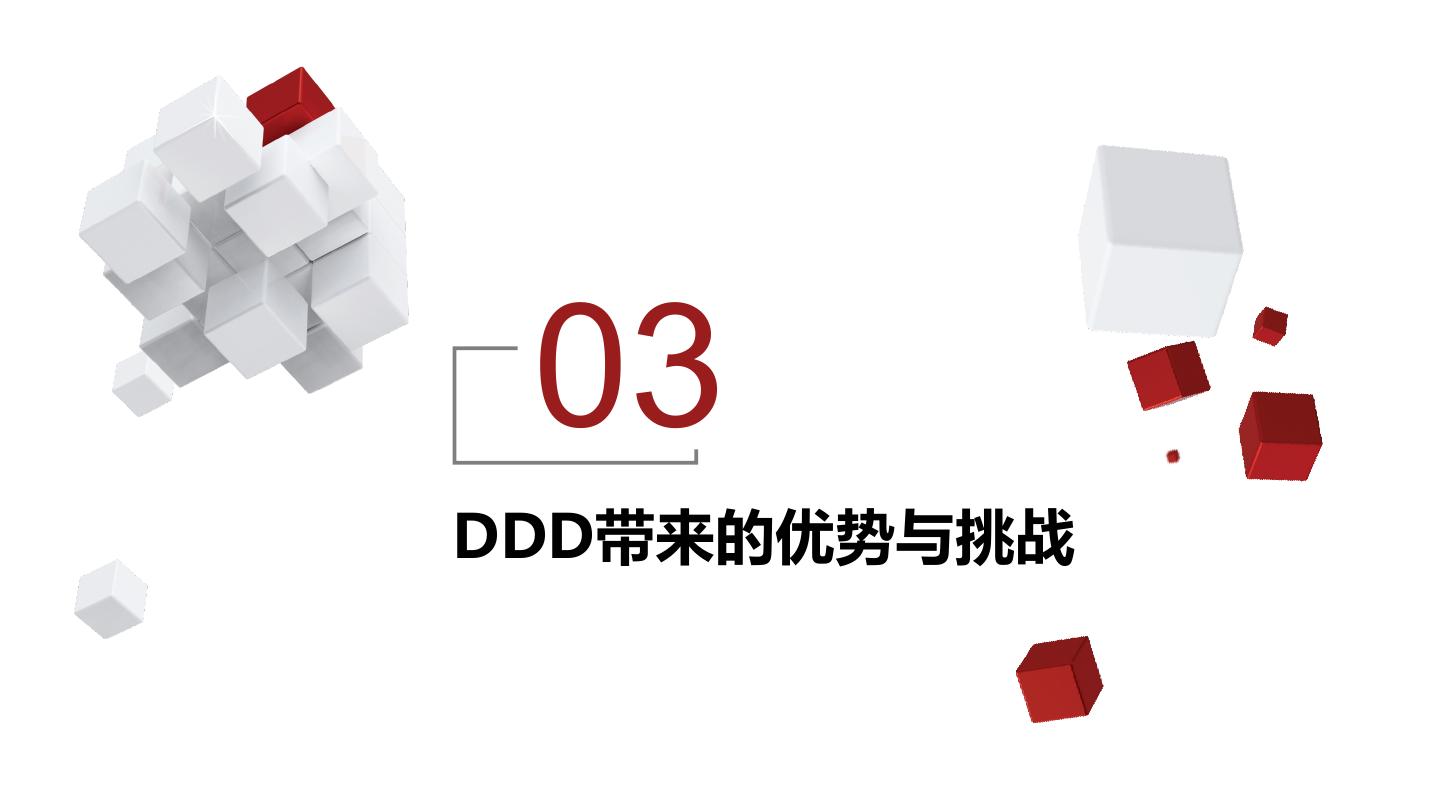 10 .3. 2 DDD的优势与挑战 业务沉淀 前端职能 设备场景 驱动力 面向交互 裂化严重 不足